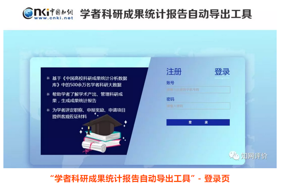 “学者科研成果统计报告自动导出工具”登录网址为:http://www.usad.cnki.net/Report.aspx