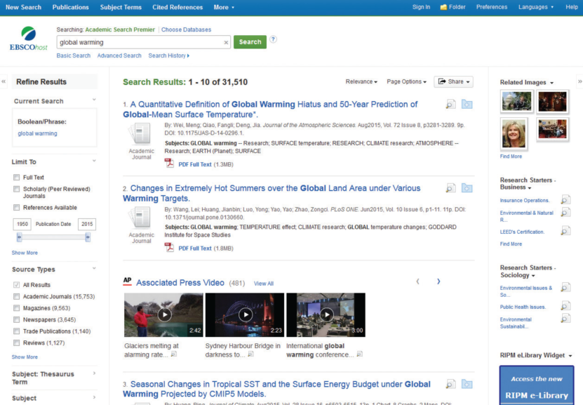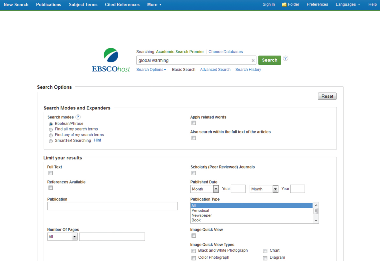 EBSCO学术主题型数据库由20个数据库子库组成,共收录了12000余种全文期刊,电子书超2700种。涉及的学科广泛,包括:艺术学、科学、应用技术、工程、环境、食品、能源、法律、犯罪、政治学、教育学、人文学、信息科学、医学、军事、营养学、写作、职业教育等。