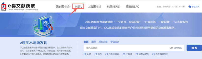 1.只限于在 e 得的 NSTL 资源检索界面(http://www.yide.calis.edu.cn/),选择“国家科技图书文献中心”(如下图所示)中检索到的资源;