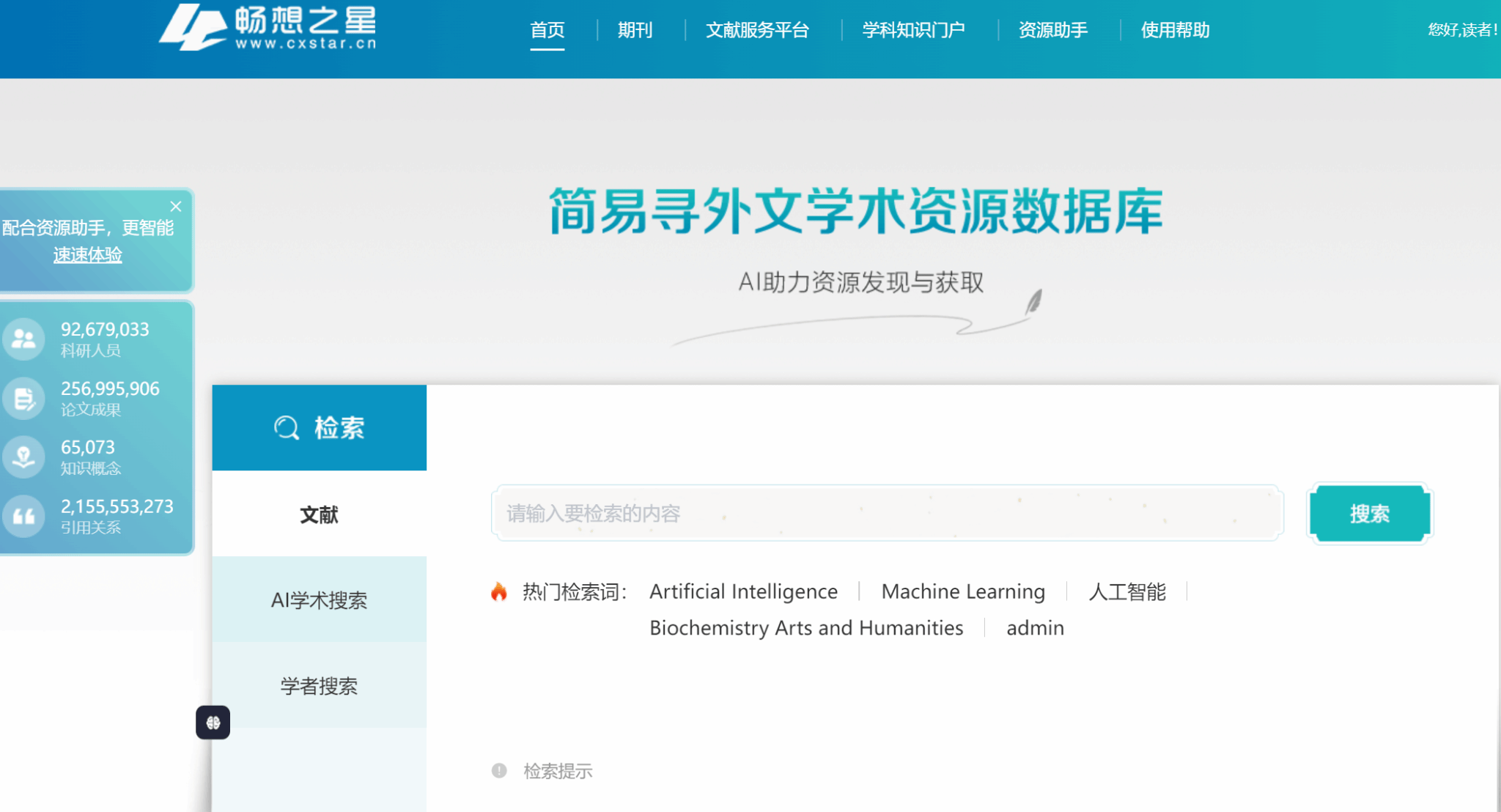 简易寻外文学术资源数据库是外文学术期刊资源“检索-获取-应用”的综合性服务平台,通过对海量外文期刊资源进行精细化编目、分类的整合,已收录了2亿+外文期刊文献数据信息,涵盖12万多种期刊、300多个数据库、700多个订购单元,2.3万多种核心期刊全覆盖。数据库提供7000多万篇开放获取资源可直接获取全文,6700多万篇文献可提供单篇采选服务,以及整合馆藏外文期刊资源,IP范围内可获取全文;并支持与官方文献传递平台的对接,快速定位文献位置、获取相关信息,提高文献传递效率。