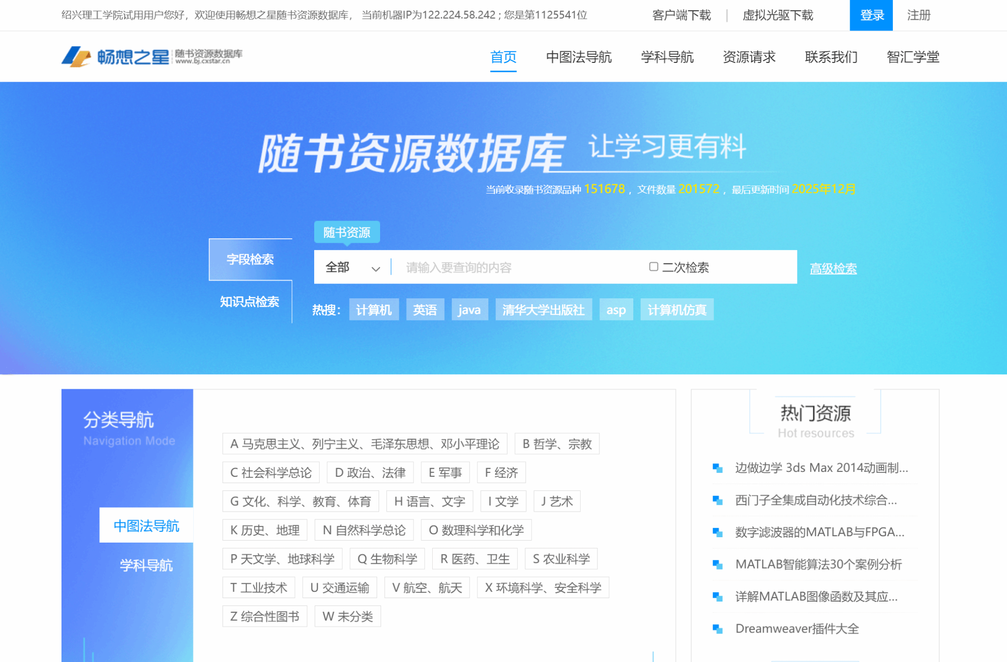 畅想之星随书资源数据库收录了自1990年以来出版的各类图书的随书资源,内容包含图书配套的实例、课件、习题、教程、素材等以文档、视频、音频最直观的方式体现,且数据总量已超15万种。中图分类全学科覆盖、馆藏覆盖率高达95%以上,完美的弥补了单纯文字信息所无法展示的知识内容,是图书不可或缺的重要组成部分。这也方便了读者在阅读的同时配合随书资源更深入的学习。